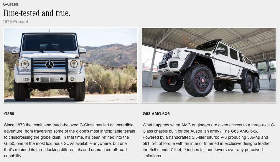 By this point, we’d established the American social voice of Mercedes-Benz as confident, bold, and irreverent. So it was at special request of the client that we brought that swagger to the brand’s American website. But for every page that we touched, nothing tied it together like Past & Future. (See it here.) Essentially, it served an overview of what had been since 1950—and what was to come for the next 50 years. It’ll be different, no doubt. But it’s always going to be the best or nothing.